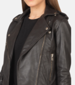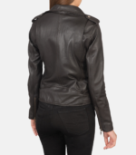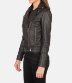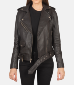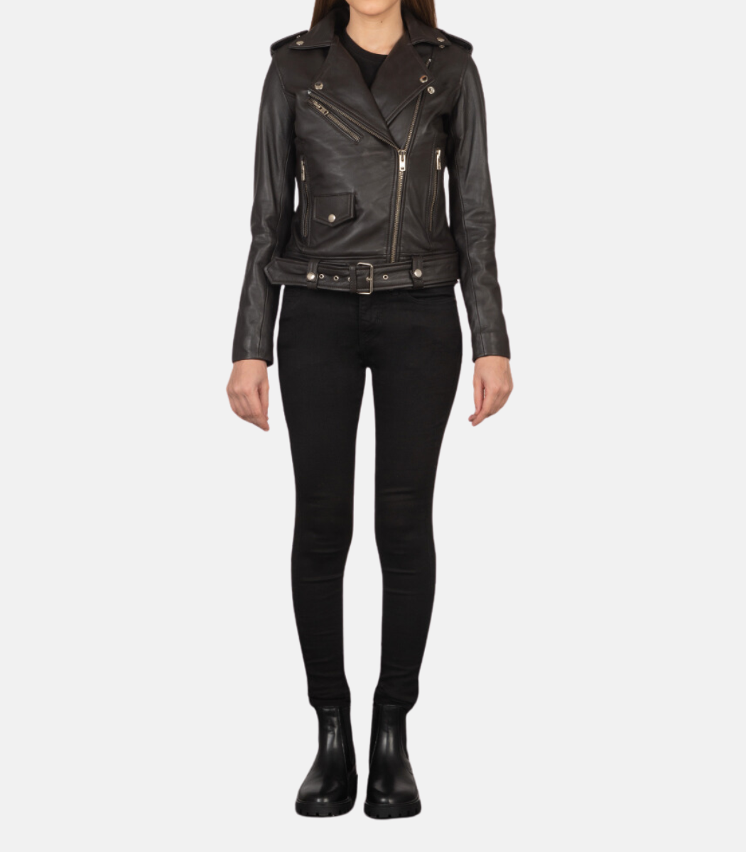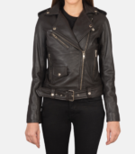 Women’s Black Leather Biker Jacket With Removeable Belt