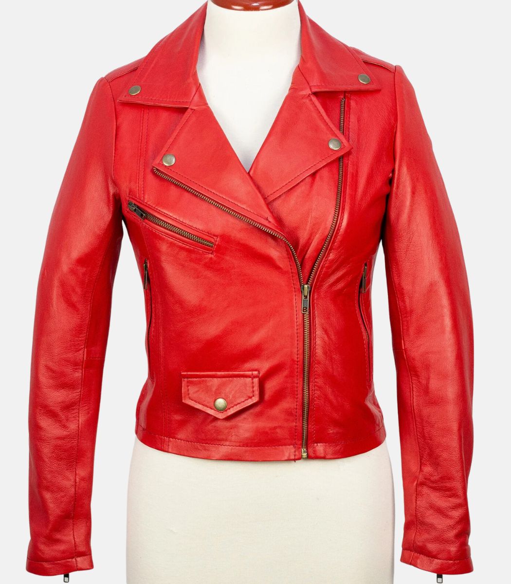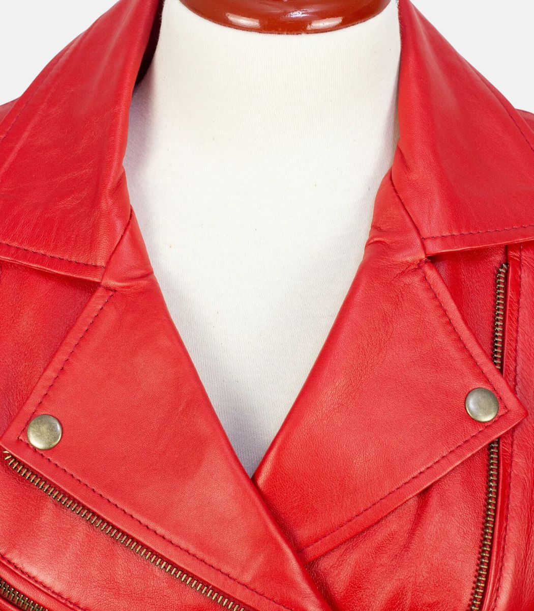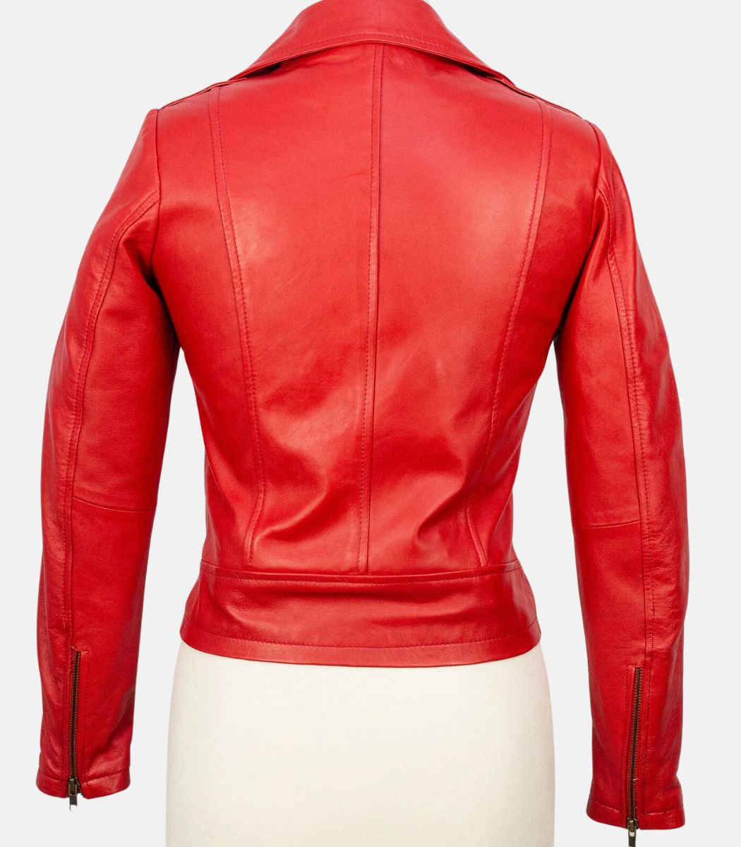 Women’s Slim Fit Short Body Red Leather Jacket