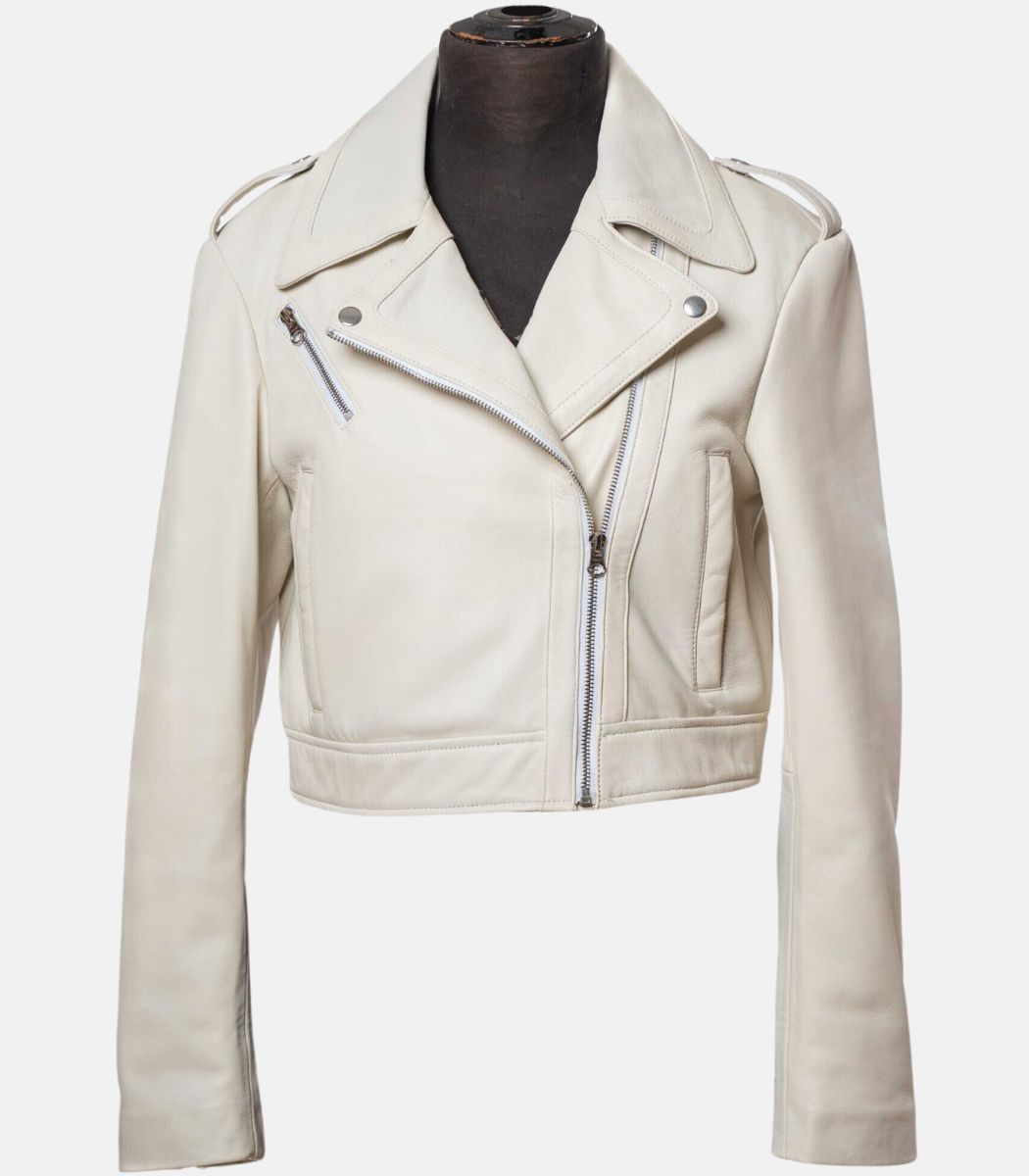 Women’s Stylish Slim Fit Off White Leather Jacket