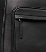 The backpack features dual two-way zippers with leather pullers for easy access. Multiple interior and exterior pockets enhance organization, including a hidden zip pocket, trolley strap, and front pouch pocket. Open side pockets, chrome-finished accessories, and a padded back panel add to its practicality.
