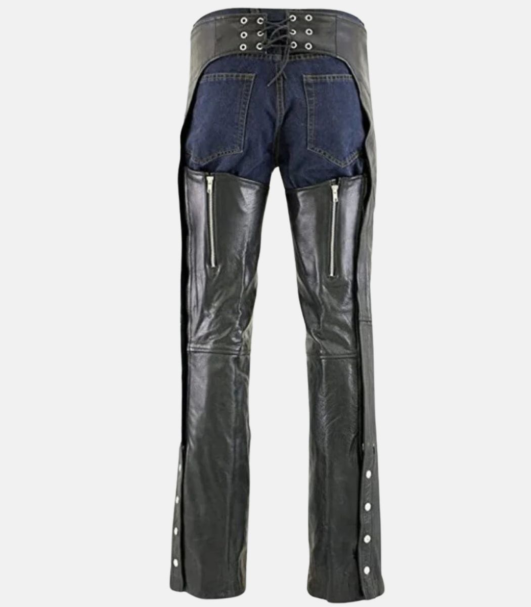 Premium Black Cowhide Leather Chaps With Jean Style Pockets