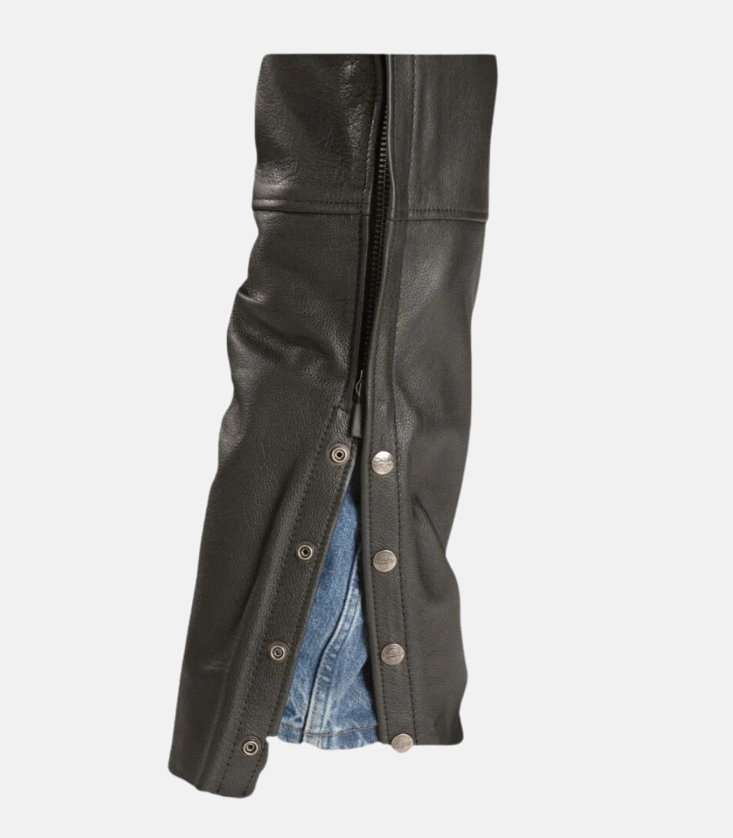 The first thing that struck me about these chaps is the quality of the leather. It’s soft yet durable, with a rich texture that only gets better with age. The craftsmanship is evident in every detail, from the stitching to the hardware, and it’s clear that these chaps were made to withstand the rigors of the road.