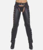 Elevate your biker style with these sleek and chic Women’s Black Leather Chaps. Crafted from premium cowhide leather, these chaps boast a timeless appeal with modern functionality. Whether you’re hitting the open road or strutting through the city streets, these chaps offer the perfect combination of style and practicality.