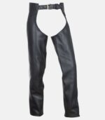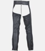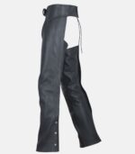 Women’s Motorcycle Black Leather Chaps with Flap Over Zipper Sheds