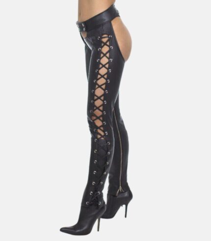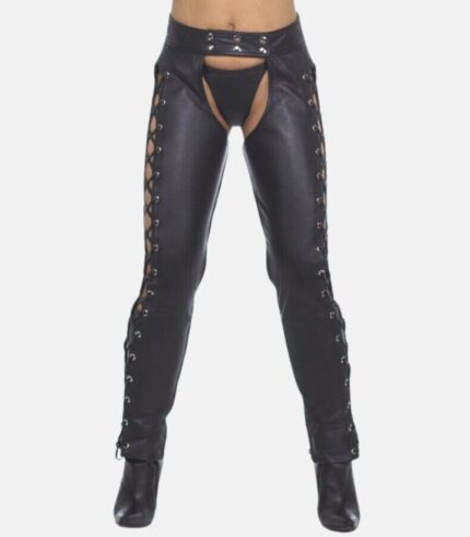 Women’s Black Leather Chaps with Side Laced up