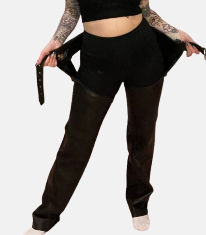 Women’s Black Leather Chaps with Zipper Pockets