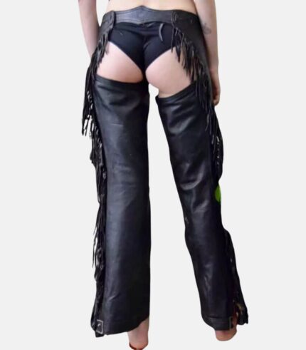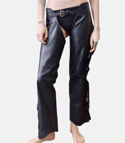 Women’s Vintage Black Leather Buttless Chaps with Belted Style