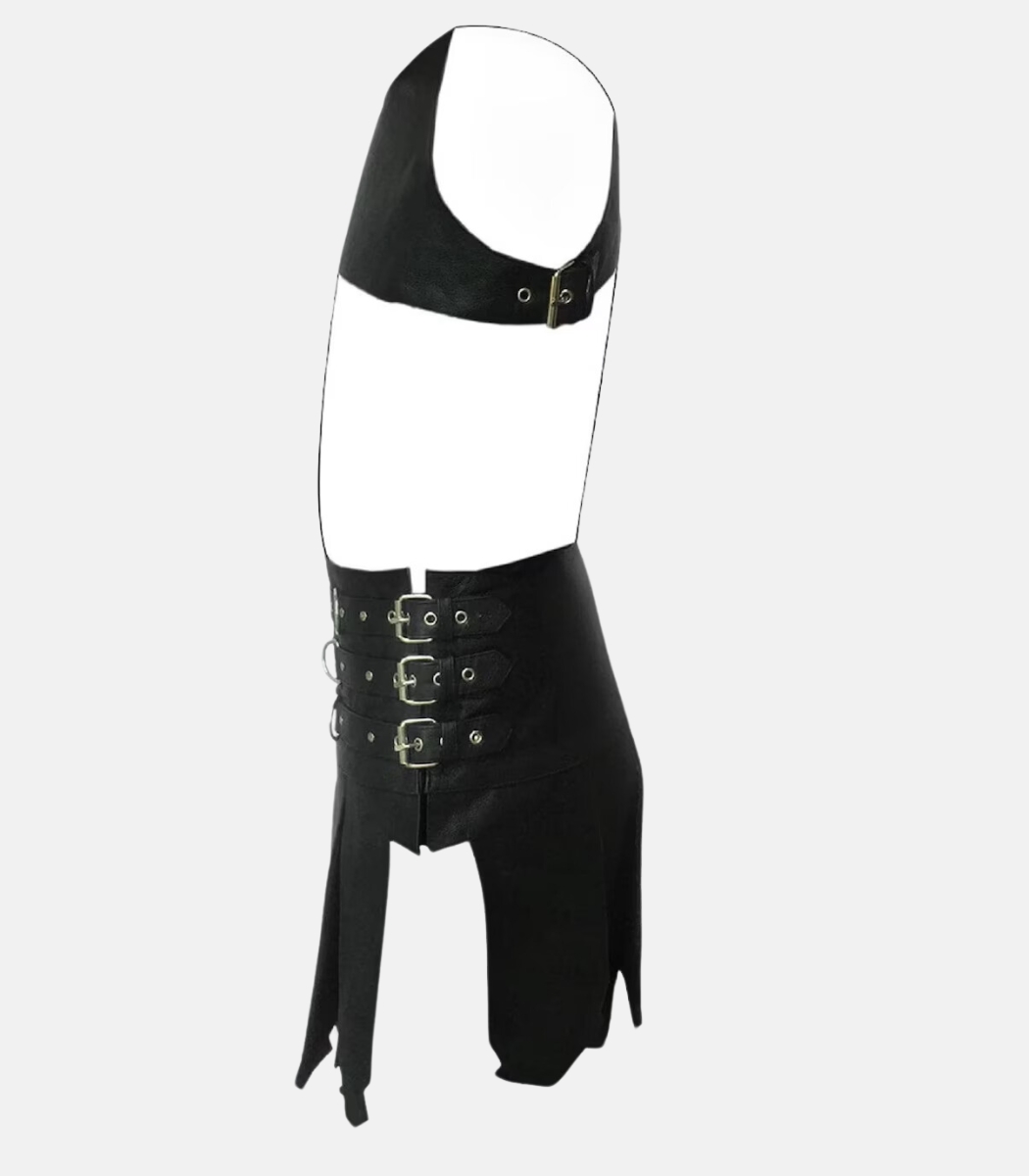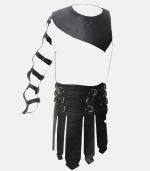 Step into the arena with this premium handmade black leather gladiator kilt. Made from top-grain cow leather, this kilt is designed for durability and style, featuring high-quality nickel-plated hardware. Complete with gauntlets and harness (helmet not included), it delivers a bold and authentic warrior look.