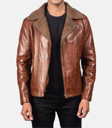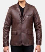 Brown Leather Jacket For Men With Notch lapel collar