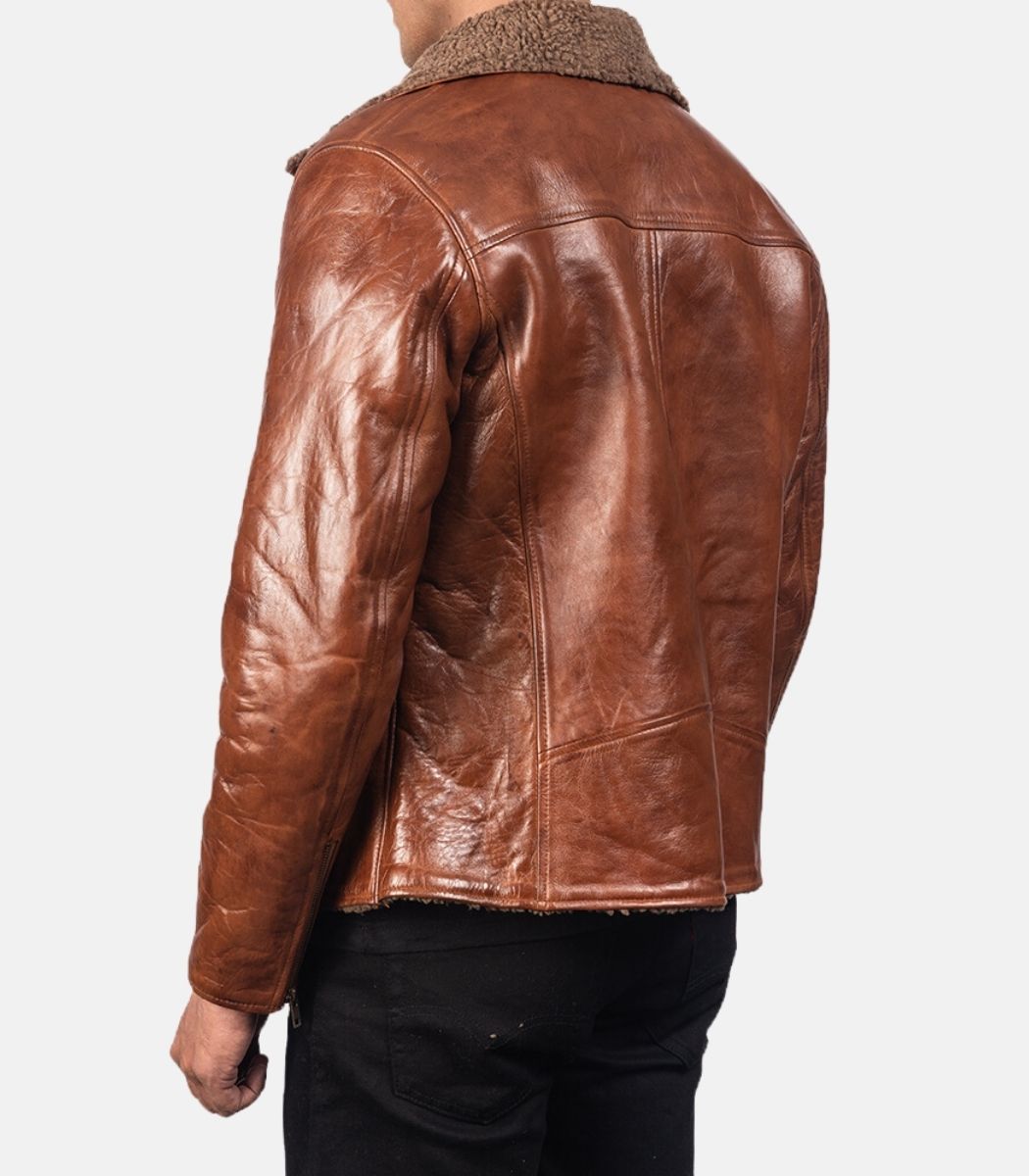 Embark on a journey of style and warmth with the Shearling Brown Leather Jacket For Men With Notch Collar. Crafted from real sheepskin leather with a semi-aniline finish, this jacket combines rugged durability with luxurious comfort. The fully faux fur-lined interior provides insulation, making it the perfect choice for chilly days.