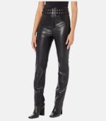 Women’s Black Leather Pants Double Belt Closure