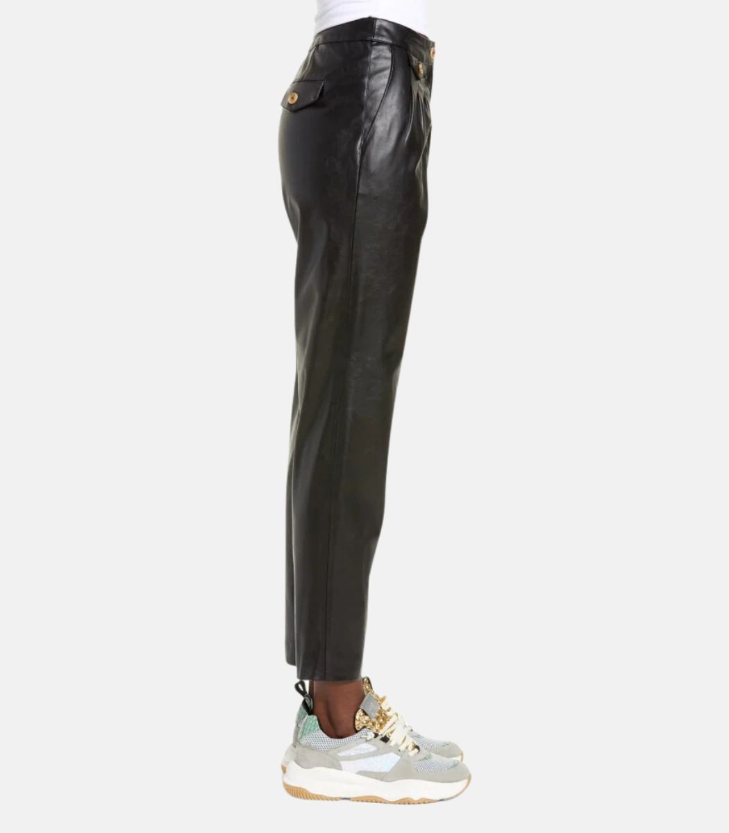 Women’s Black Leather Trousers With Front & Back Pockets