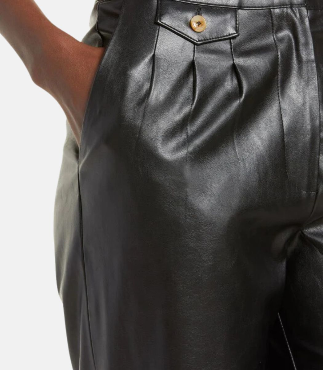 Elevate your fashion game with our Women’s Black Leather Trousers With Front & Back Pockets, offering a timeless and classic straight-leg design for women. Renowned for their streamlined silhouette from the hip down to the ankle, these trousers boast a versatile and stylish option for your everyday wardrobe. Whether it’s the mid-rise or high-rise waistline, the pockets at the front and back, or the chic zippers, every detail adds to the sophistication of these leather pants. Embrace the prominence of this fashion-forward choice that seamlessly blends trendiness with sophistication, making it a perfect addition to your wardrobe.