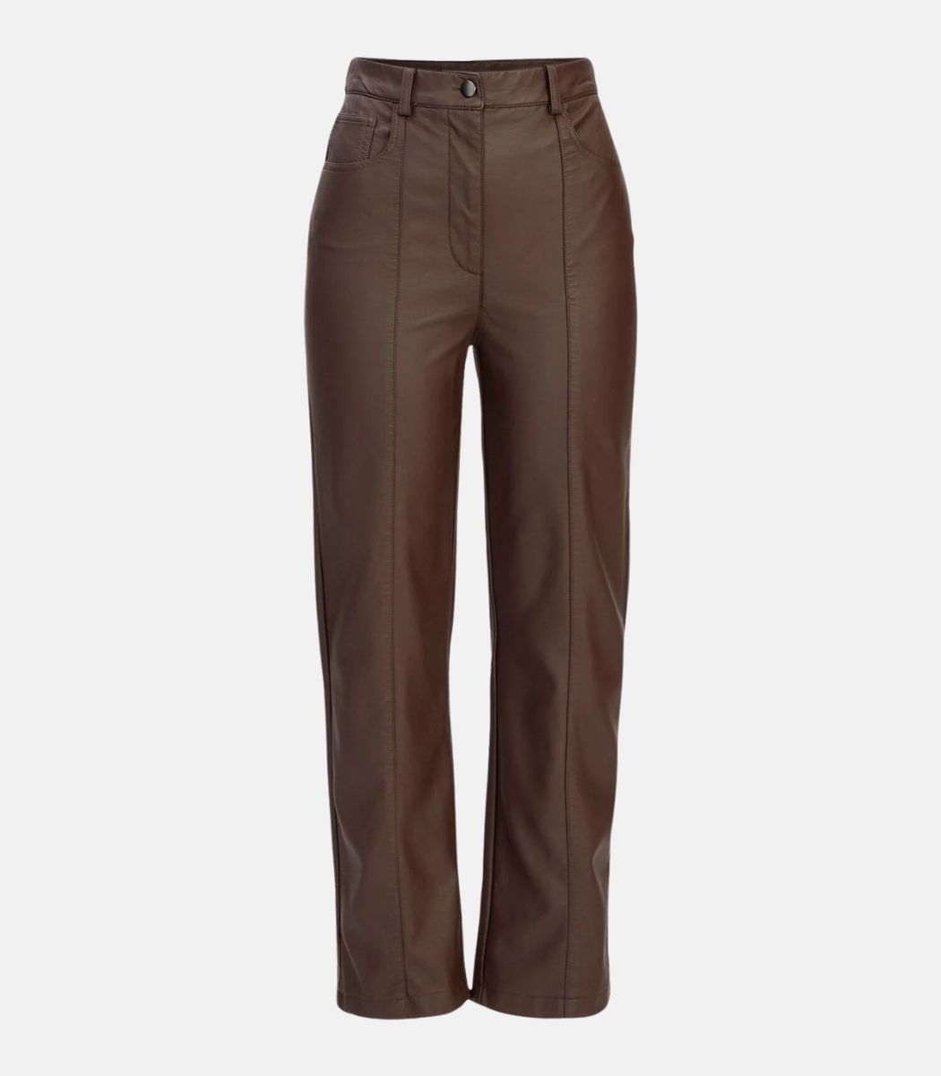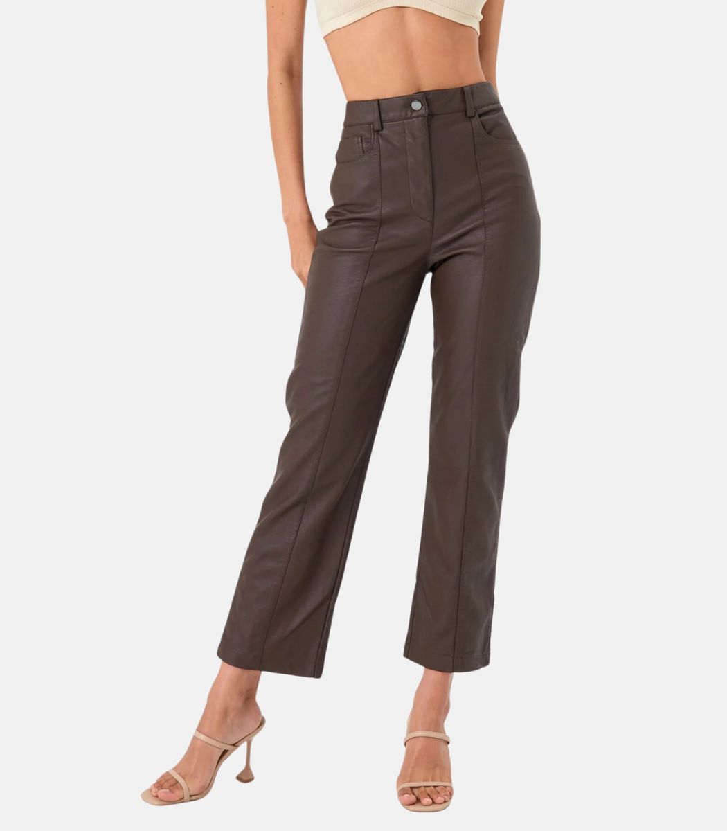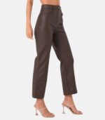 Women’s Brown Leather Trousers Fully Lined with High-Quality Satin