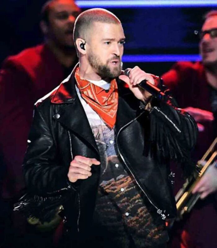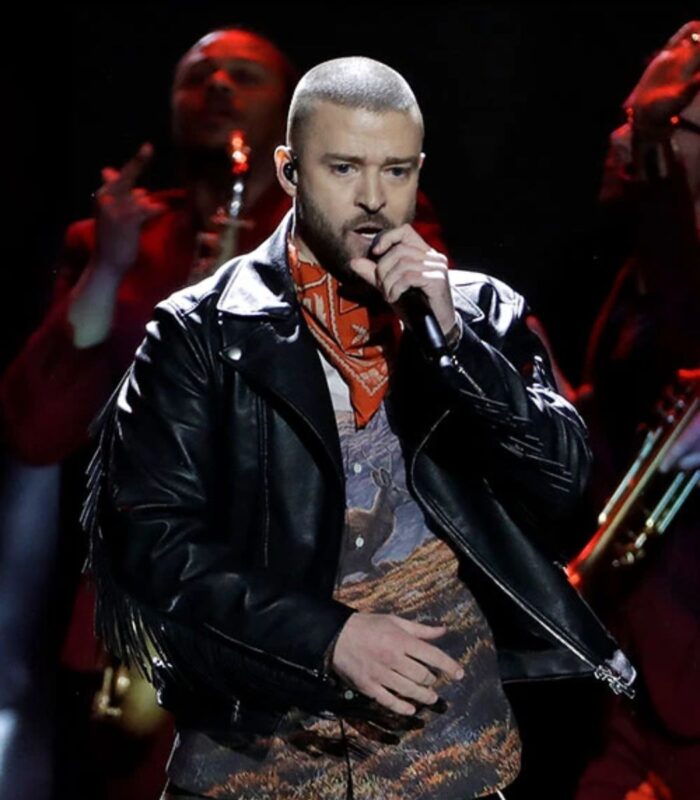 Elevate your preppy style with a touch of edginess in the Justin Timberlake Black Bomber Style Leather Jacket. Inspired by Timberlake’s iconic look from the 2018 Super Bowl Halftime Show, this fringe-style leather jacket is a bold statement piece that adds spice to sophistication.
