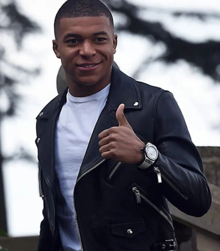 Introducing Kylian Mbappe Premium Black Leather Jacket, inspired by the iconic French professional football player himself. Crafted with the finest quality pure Napa leather, this jacket embodies sophistication and charm. Whether it’s a casual hangout with friends or a stylish arrival for training sessions, this jacket ensures you exude confidence and panache effortlessly. With its sleek design and impeccable craftsmanship, this leather jacket is a must-have addition to your wardrobe, promising to elevate your everyday look to new heights.