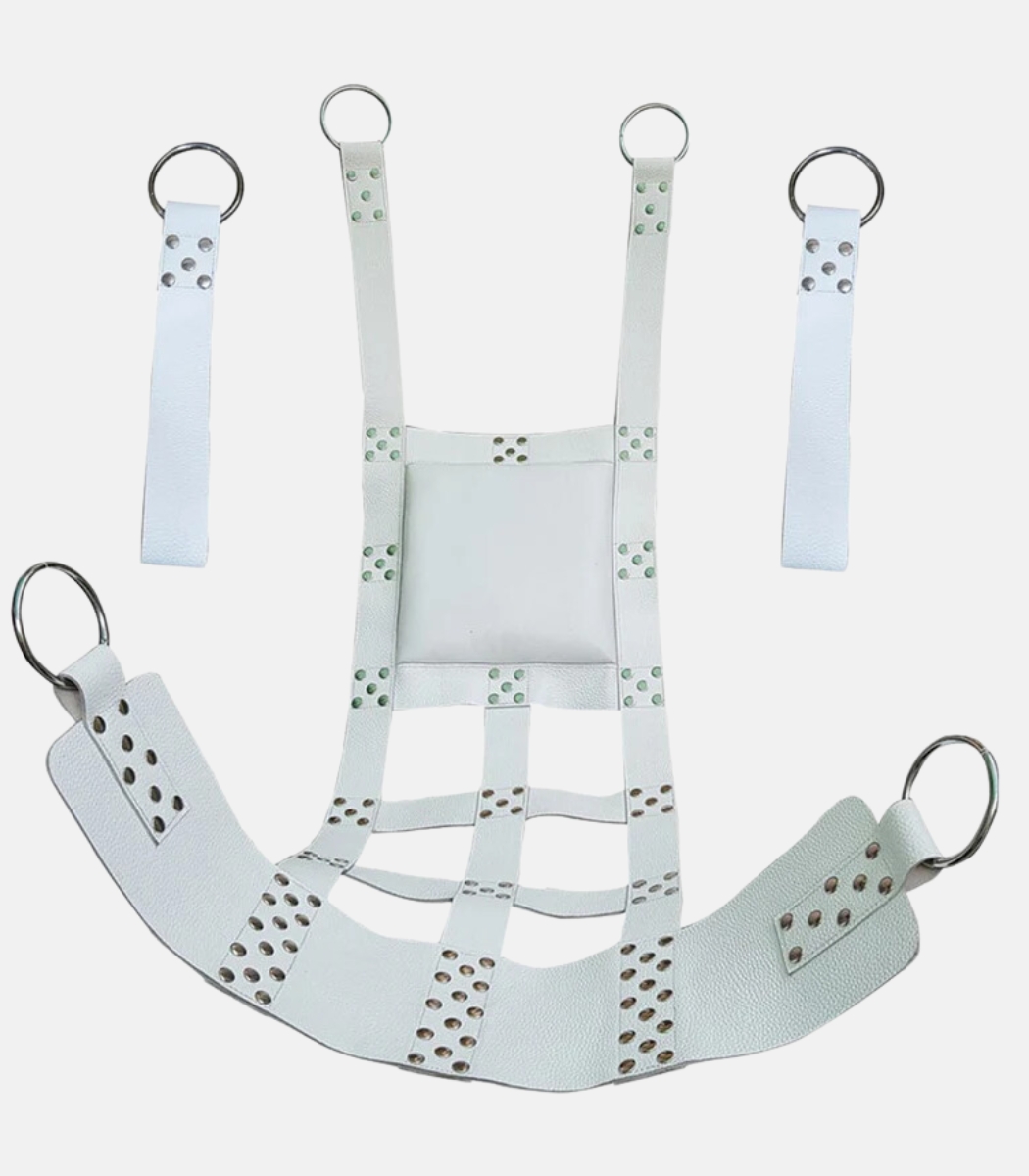 This high-quality white leather sling is expertly crafted for both comfort and durability. Handmade from premium A-grade leather, it is designed for secure suspension and long-lasting use. Its heavy-duty construction supports up to 150 kg (350 lbs), providing reliability for your setup.