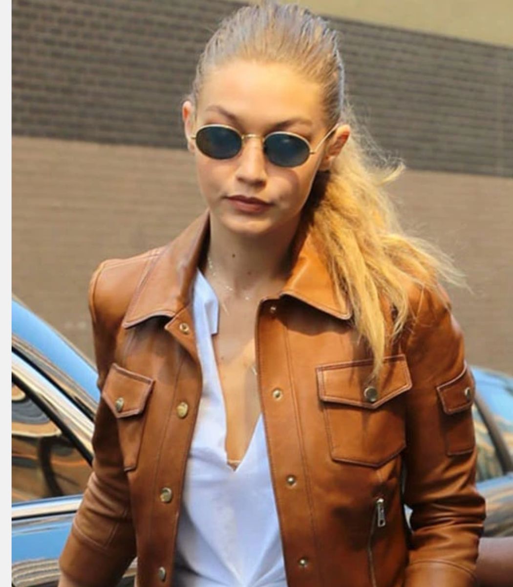 Elevate your style with our Gigi Hadid-inspired tan brown leather jacket, a chic addition to your wardrobe. This jacket captures the essence of everyday fashion as seen on the stunning Gigi Hadid, renowned as the International Model of the Year in 2016 by the British Fashion Council. Worn with confidence in the bustling streets of New York City, this jacket exudes elegance and effortlessly complements your personal style.